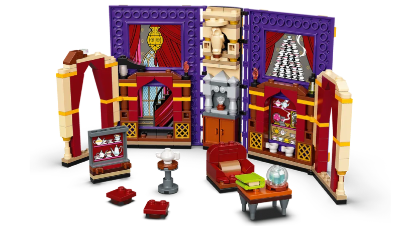 本作的人偶包含了教授-西碧·崔老妮,以及哈利·波特、芭蒂·巴提(Parvati Patil)兩位學生,磚拼形式的紅色沙發、小茶几都很不錯。
