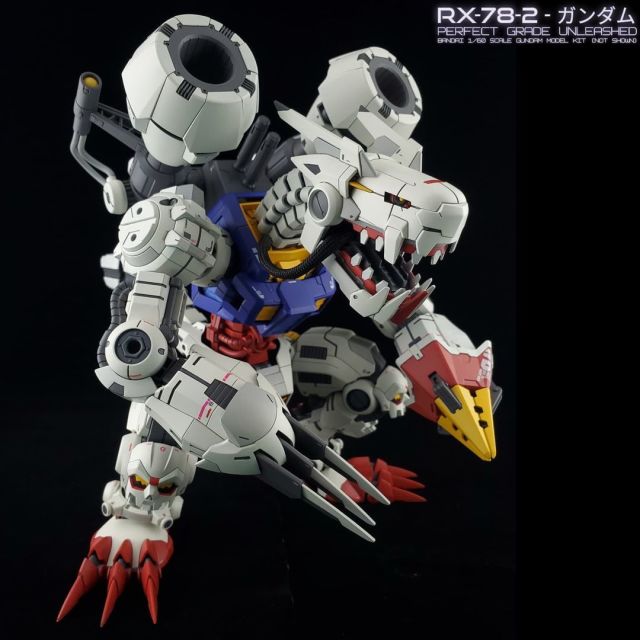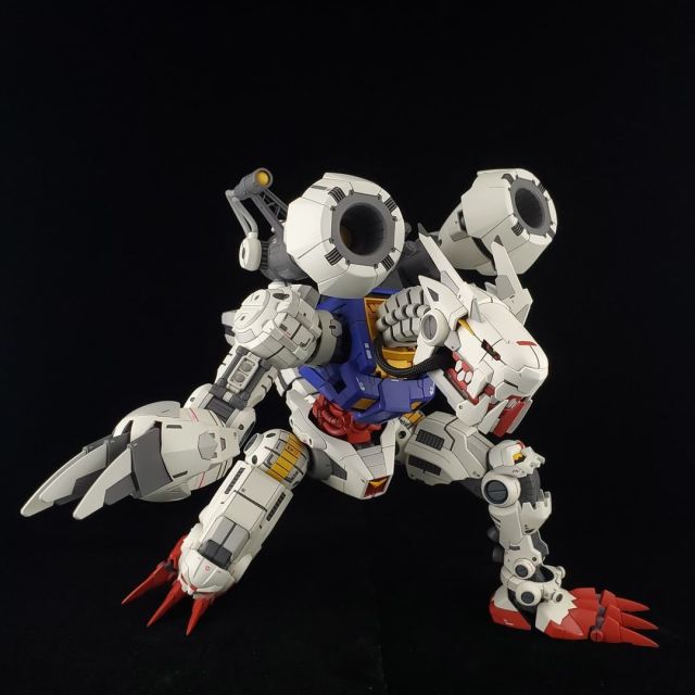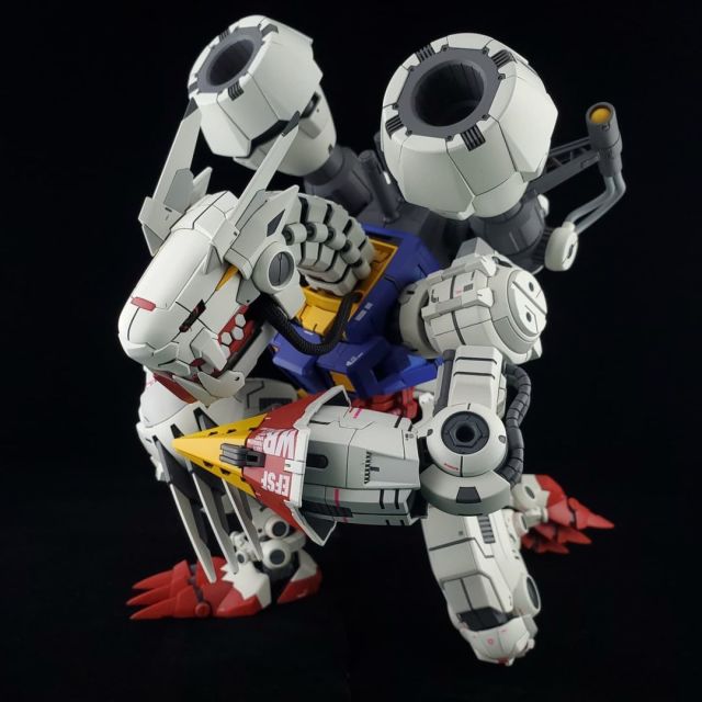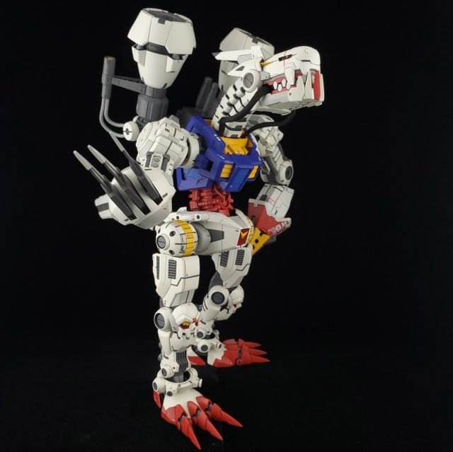 而日前在Instagram上,就有一位歐美模型玩家Z'Guyk Fieri(@dumbpla),就將「RX-78-2 鋼彈」的身體與《數碼寶貝》機械邪龍獸(又稱無限龍獸)的頭部與四肢進行結合,並且更以鋼彈為主的色系來為進行塗裝,使它成為一台完成度相當高的…或許我應該稱呼它為合體獸嗎?或是RX-78-2機械邪龍獸、無限鋼彈獸之類的名稱呢?
