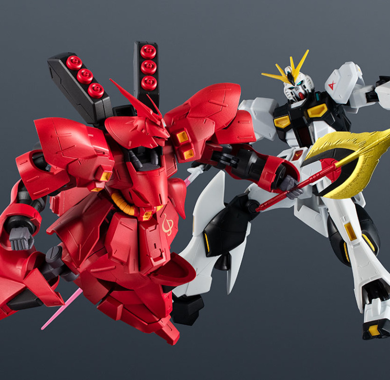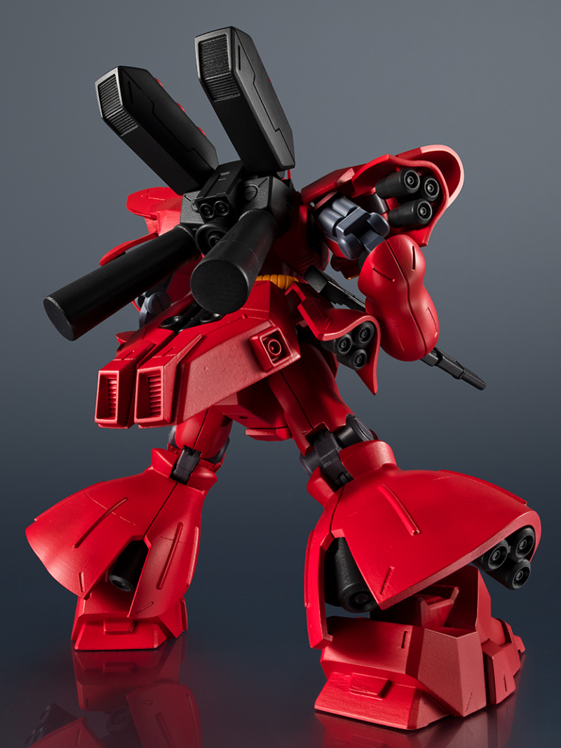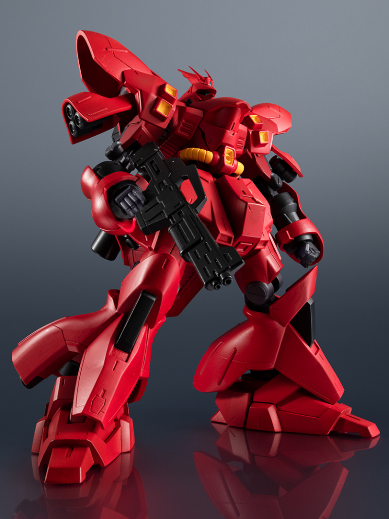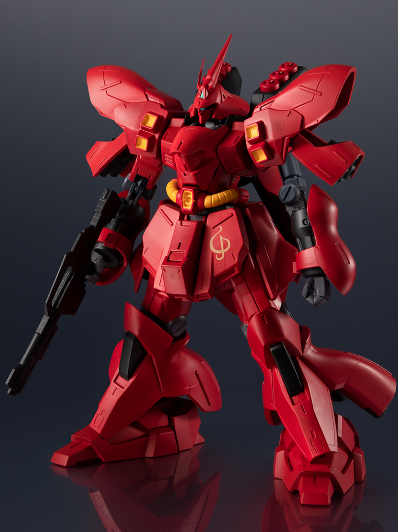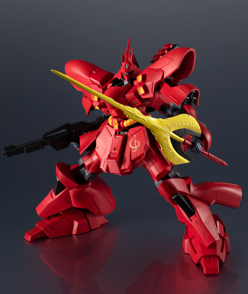 繼阿姆羅駕駛 ν 鋼彈後,這次輪到電影《逆襲的夏亞》中由夏亞總帥駕駛的人氣機體「沙薩比」推出,造型還原了那極具份量的厚重紅色裝甲、印刷於裙甲的夏亞個人標誌、藏於裝甲下的大量推進噴嘴與背部可拆卸的武裝「感應砲」。運用大型光束戰斧、光束散彈步槍就能與另售的