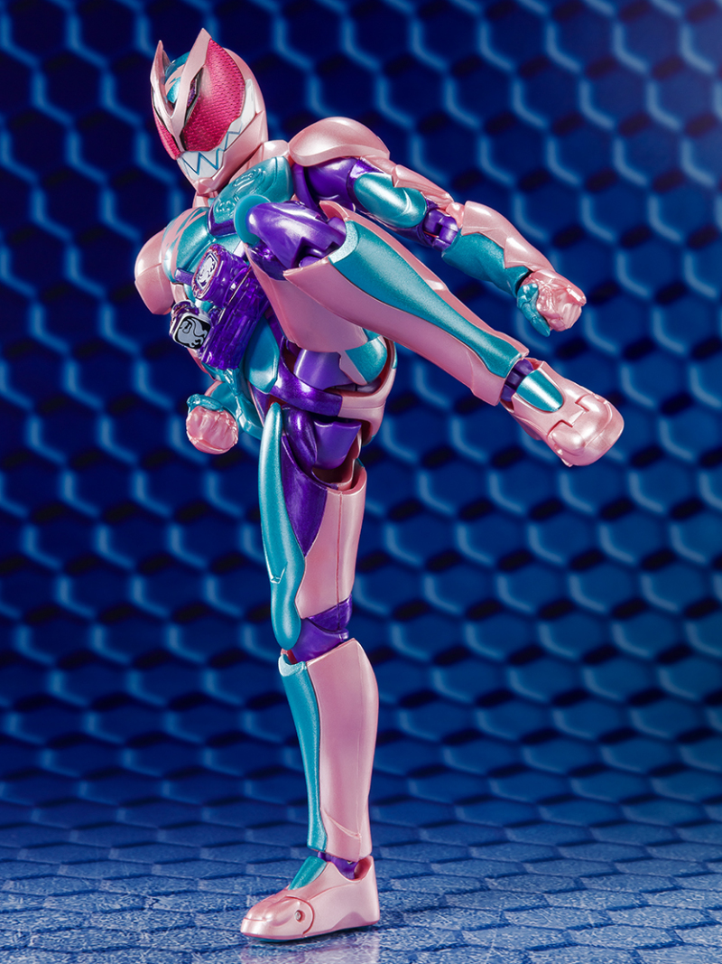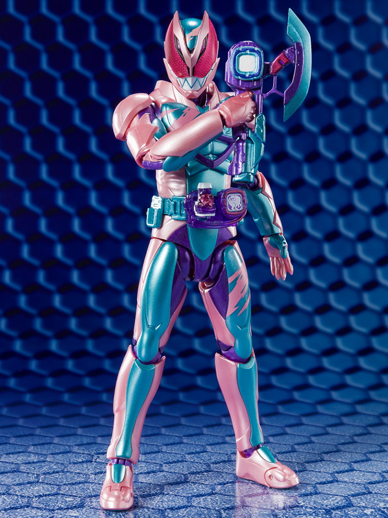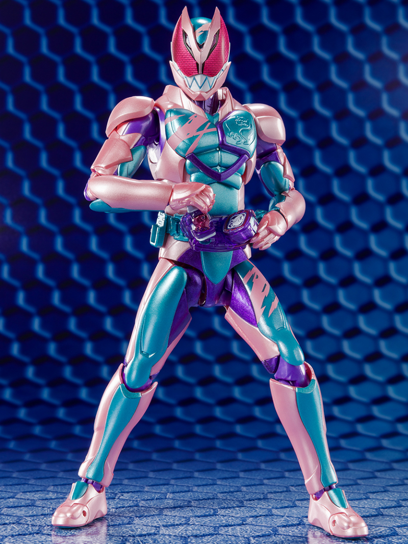 「S.H.Figuarts 假面騎士REVI」首批生產商品限定特價 3,850 日圓(含稅)/後續建議售價 4,950 日圓(含稅)。造型再現狂氣十足的頭部造型,並以金屬粉紅、金屬藍塗裝出身軀獨特又鮮艷的配色,腰帶「REVICE 驅動器」則具備可動機構,並附有多種造型手掌,搭配全身靈活可動再現劇中戰鬥姿態。