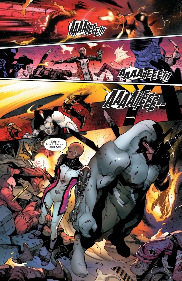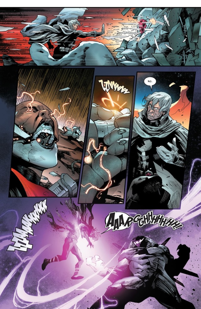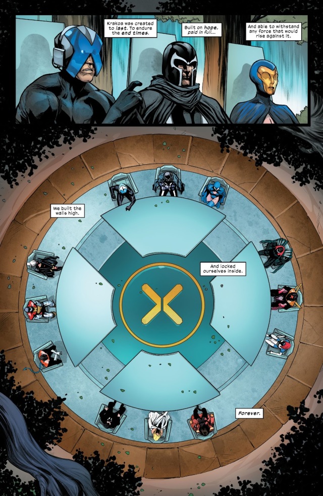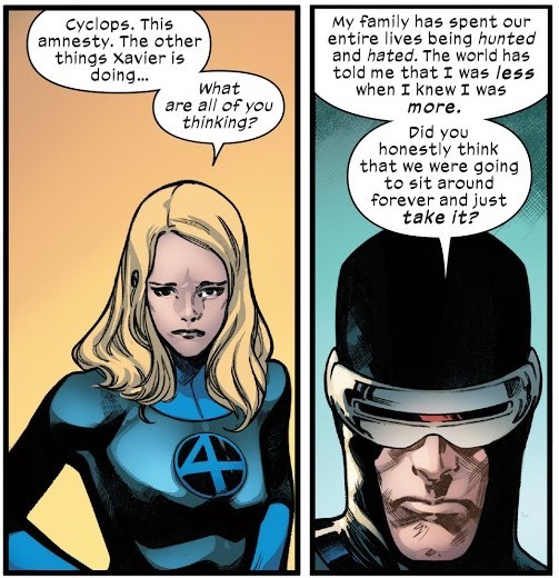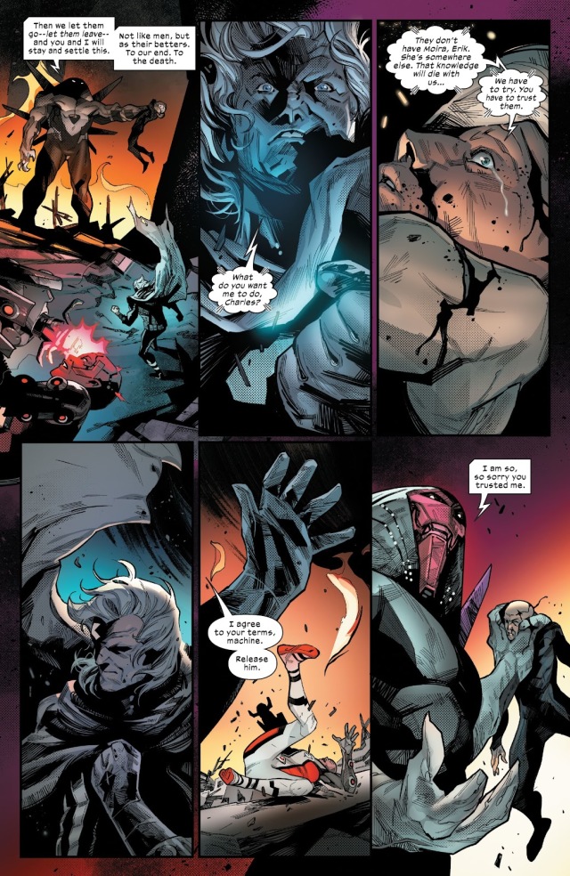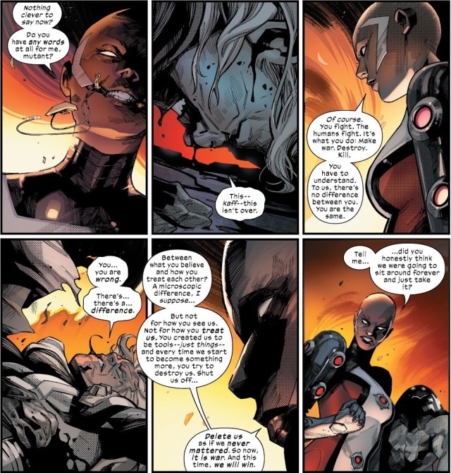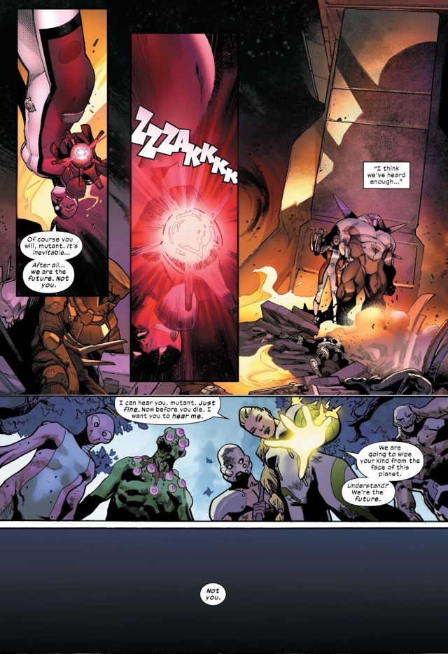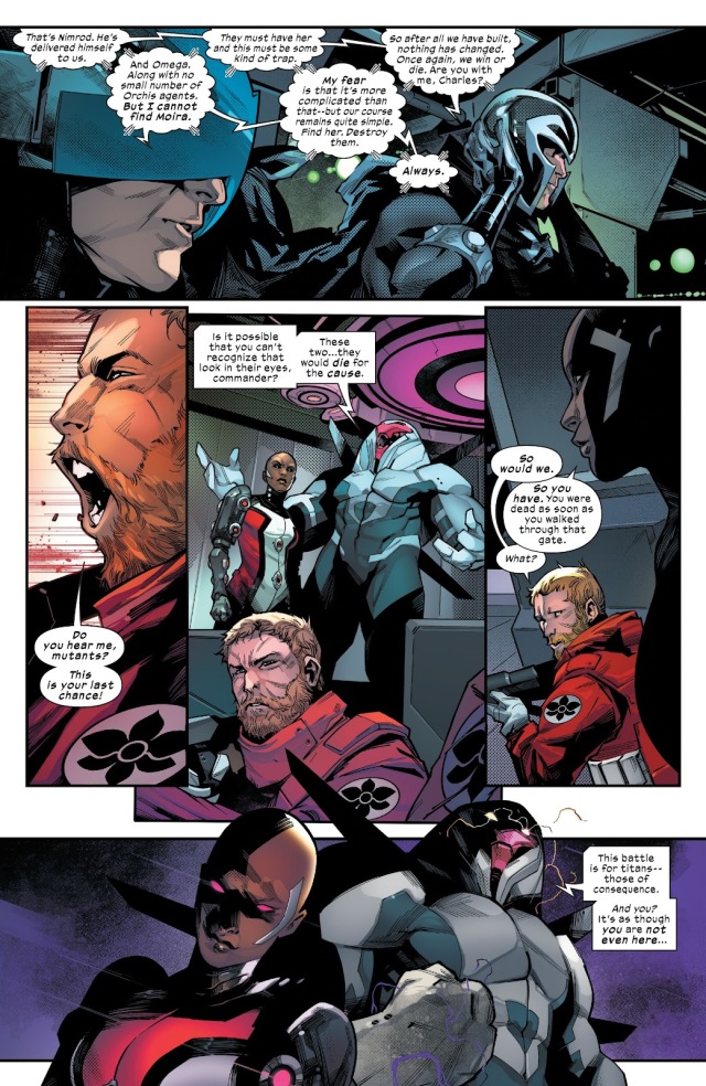從未想過獨眼龍在《House of X》第一期對隱形女說過的「你真的認為我們會袖手旁觀、逆來順受?」會在此時被奧米加哨兵以同樣的心情對萬磁王說起。