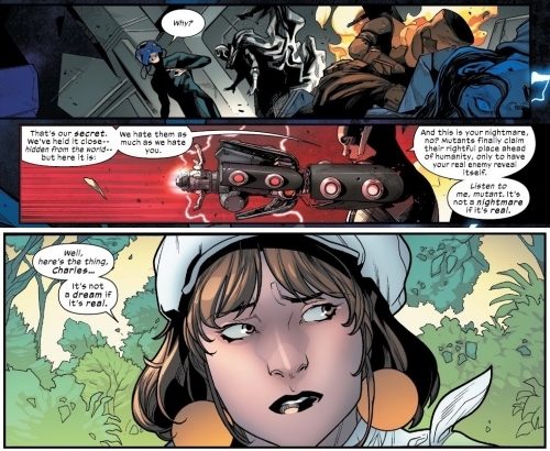 X教授對此感到相當疑惑,但是奧米加哨兵只是表示「我們一直都像痛恨變種人一樣痛恨著人類。」如今變種人總算取得了他們在世界上的地位,但是卻發現了真正的敵人所在。「這不是噩夢成真,因為這已成現實。」