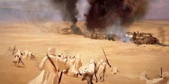 接下來的高速追逐與劫車也正是西部片風格的經典動作場面,電影《韓索羅》(Solo,2018)亦有類似的橋段。經歷一番努力與折騰,波巴終於成功領導突斯肯族停下了該列車,不僅將貨物全數收歸己有,亦俘虜了為數不少的乘員。