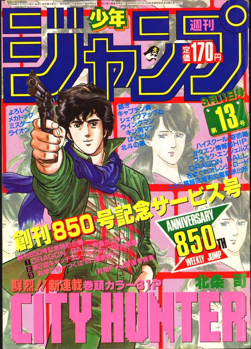 刊登《城市獵人》第一話的週刊少年JUMP 1985年13號 Image credit:北条司オフィシャル@hojo_official