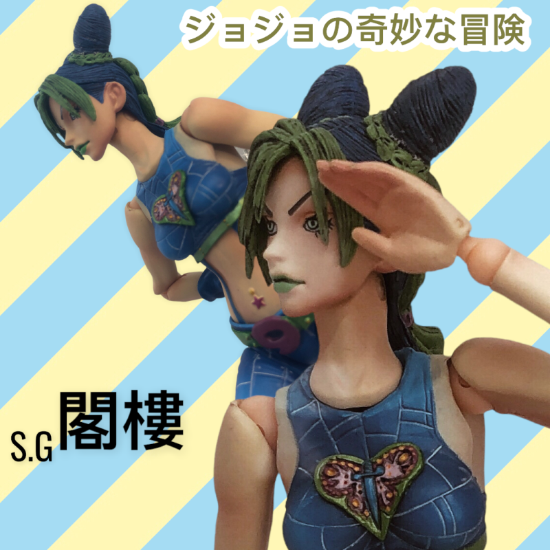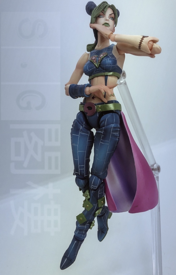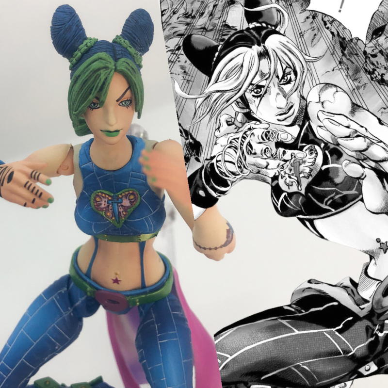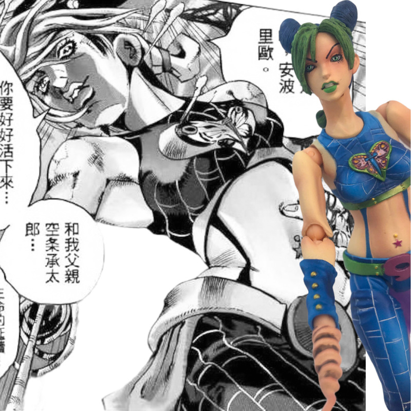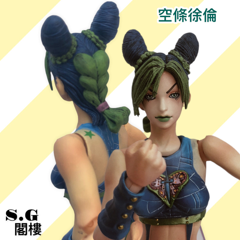 Medicos Entertainment 公司推出的人氣動漫《JOJO的奇妙冒險第 6 部石之海》中,“空條徐倫”以再版重新登場!忠實原味呈現空條徐倫的肌肉造型,同時又不失女人味!配件包裡有豐富多樣手部零件及頭部零件!