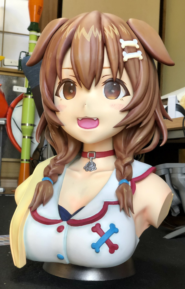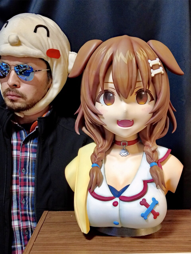日本一名推主kagerou works.h(@kagerou_honey)很喜歡Hololive的Vtuber「戌神沁音」,於是他就以3D列印的技術製作出一尊沁音的等身半身像,不論是頭髮、臉部樣貌、狗耳還有身上的服裝都和沁音本體一模一樣。