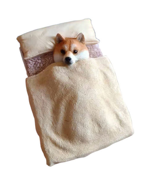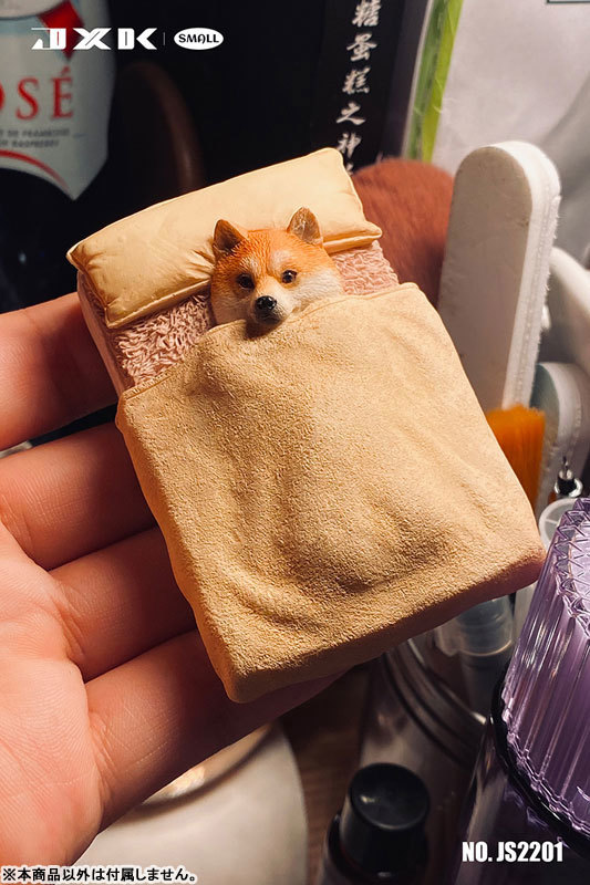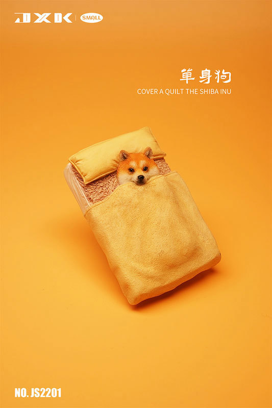 JXK Studio「單身狗柴犬」塗裝完成品,以網路流傳的柴犬梗圖為設計,重現柴犬舒服地包在溫暖被窩裡、可以可愛也可以嘲諷的水汪汪表情~尺寸約為長 7 公分,細緻刻畫出柴犬身上蓬鬆柔軟的毛,並施以柔和、擬真的塗裝;附有枕頭、棉被、床墊等場景配件(不可拆),完整還原「睡眠是藝術,誰也無法阻擋我追求藝術地腳步!」