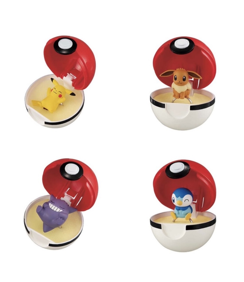 「Ringcolle!(リンコレ)」系列,採用環保轉蛋形式,將轉蛋殼設計為戒指盒,打開後裡面則有著可愛設計的趣味戒指。這次的「Ringcolle!寶可夢戒指」環保轉蛋,以精靈球為外盒,打開後收錄有:躺躺睡覺的皮卡丘、耿鬼,以及乖巧坐姿的伊布、波加曼四款戒指,戴在手上有夠萌~兼具造型與裝飾實用性!