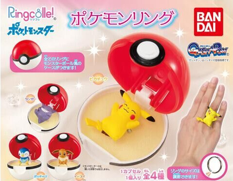 萬代公司轉蛋事業部 GASHAPON,旗下將戒指化為轉蛋收藏的「Ringcolle!」系列,在蛋黃戒指後,這次以《精靈寶可夢》為主題,推出「Ringcolle!寶可夢戒指」環保轉蛋~款式共有四種,一轉參考售價為 300 日圓,已於 2022 年 01 月下旬開轉。