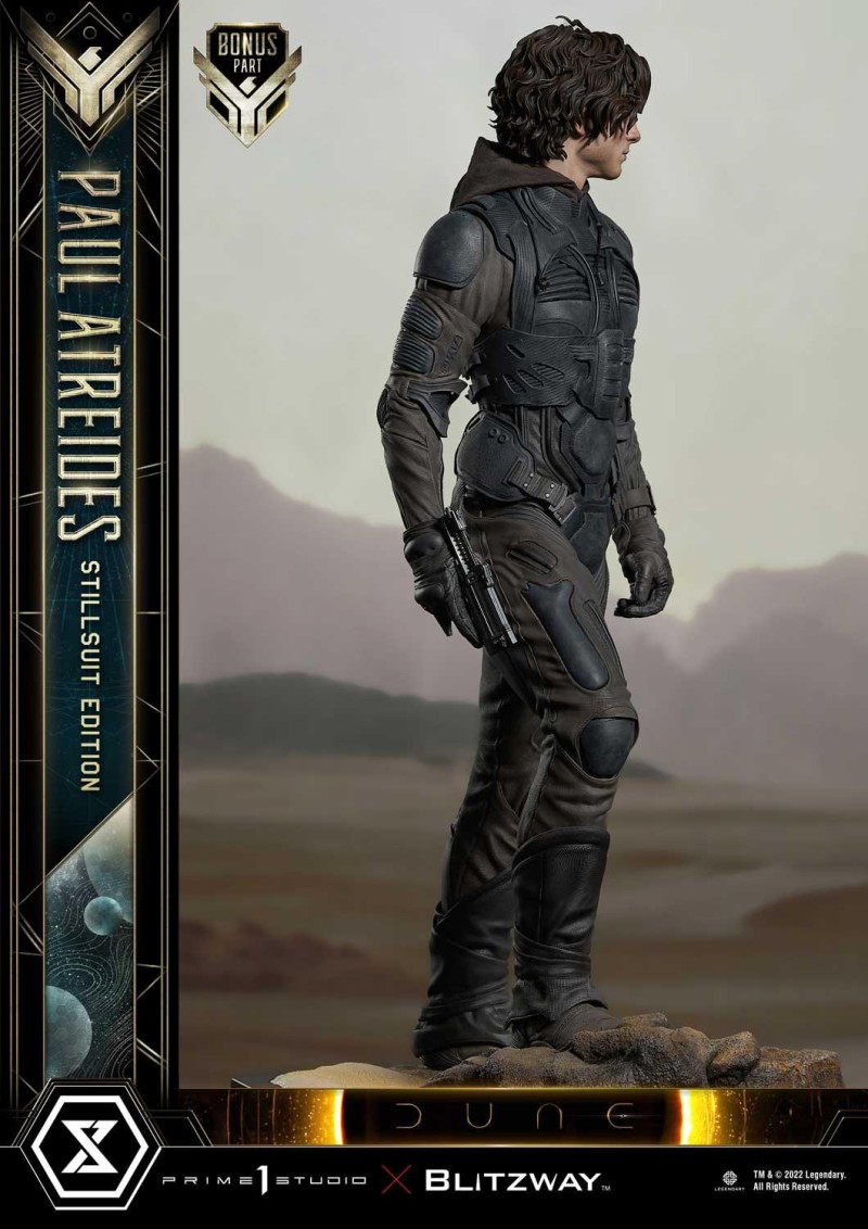 日本高端雕像廠牌 Prime 1 Studio 旗下的「Premium Masterline(プレミアムマスターライン)」系列於昨(12)日發表了出自科幻史詩巨作《沙丘》的最新商品「保羅·亞崔迪 蒸餾服版本」(ポール・アトレイデス スティルスーツエディション)1/4 比例全身雕像特典版,預計 2023 年 1~3 月發貨。