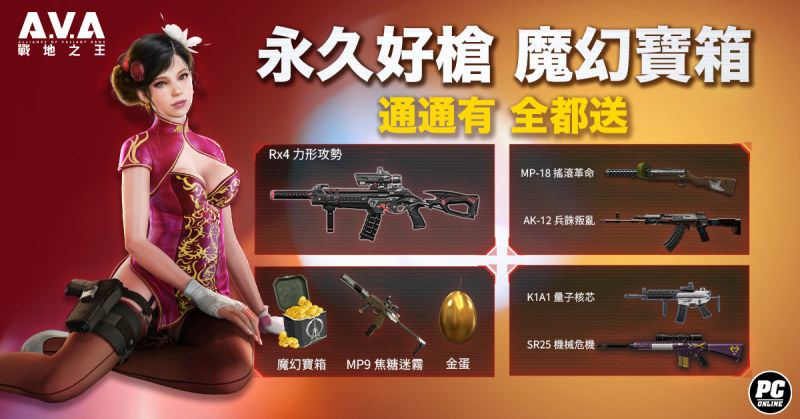 慶祝 2022 年的首次改版,同時迎接即將到來的農曆年節,本次《A.V.A 戰地之王》同樣準備了諸多活動與福利;遊玩「捍衛作戰」達到指定場數就有「MP9 焦糖迷霧」永久槍、體驗「重鎚強擊 Adv.」地圖則有能開出各種大獎的「魔幻寶箱」可以領!