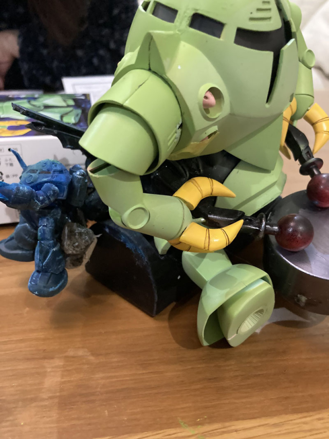 作者是ひでたく(@hidetaxi55),他是一名模型師,他讓吉翁著名機體「索克」的模型和打鼓玩偶的零件做結合,誕生出了「打鼓索克」,或是他命名的「ピヨピヨゾック」,讓索克拿著小鼓棒一邊擺動身體然後一邊打鼓,而且還會跟著節奏發出「嗶嗶」聲,另外在啟動玩具時,索克的眼睛也會跟著發光,簡直就是「用鋼普拉帶來笑容」的典範。