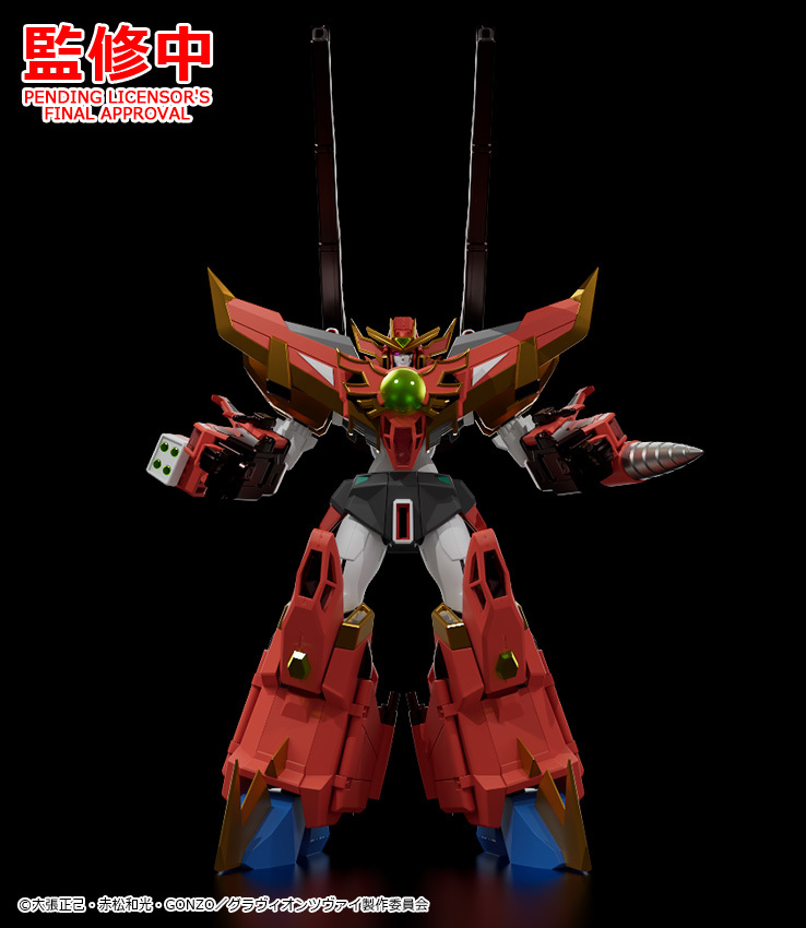出自動畫《超重神GRAVION 》系列,主角方所運用的合體機器人「Sol Σ Gravion 」以組裝模型規格登場!徹底再現核心「GraΣ」與四架「Sol Gradiva」機械進行「炎皇合神」的合體機構,同時也能夠分離單獨把玩。此外也能將核心替換為另售的「超重皇」再現「Sol Gravion 」。甚至還能將「God Gravion 」「Sol Σ Gravion 」兩款商品進一步合體,再現最凶合神「Ultimate Gravion」!