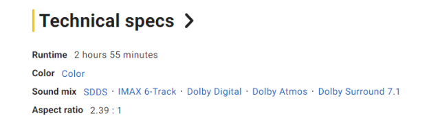 據IMDb網站上所顯示,電影《蝙蝠俠》的時長為2小時55分鐘,近次於2021年3月於HBO Max發行的4小時電影《查克·史奈德之正義聯盟》(Zack Snyder's Justice League),若是撇除掉長達183分鐘的《蝙蝠俠對超人:正義曙光》(Batman v Superman: Dawn of Justice)終極加長版,這很可能成為近年來片長最長的一部DC院線電影。