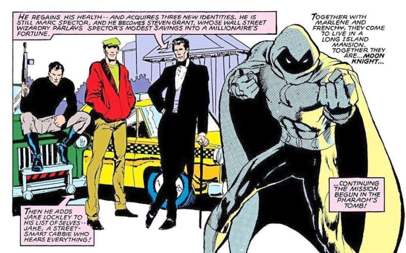 雖然我們在預告看到奧斯卡·伊薩克所飾演的角色名為史蒂芬‧葛蘭特(Steven Grant),但實際上他的本尊身份為馬克·史貝特(Marc Spector)。 一個小地方也許對於英語不熟的觀眾比較難注意到,那就是馬克切換為不同人格的時候,會使用不同的發音與語氣說話。 在漫畫原作的設定中,馬克原本是一位美國中央情報局(CIA)探員,後來轉職成為傭兵,除了月光騎士之外,馬克一共擁有三種人格與身份: