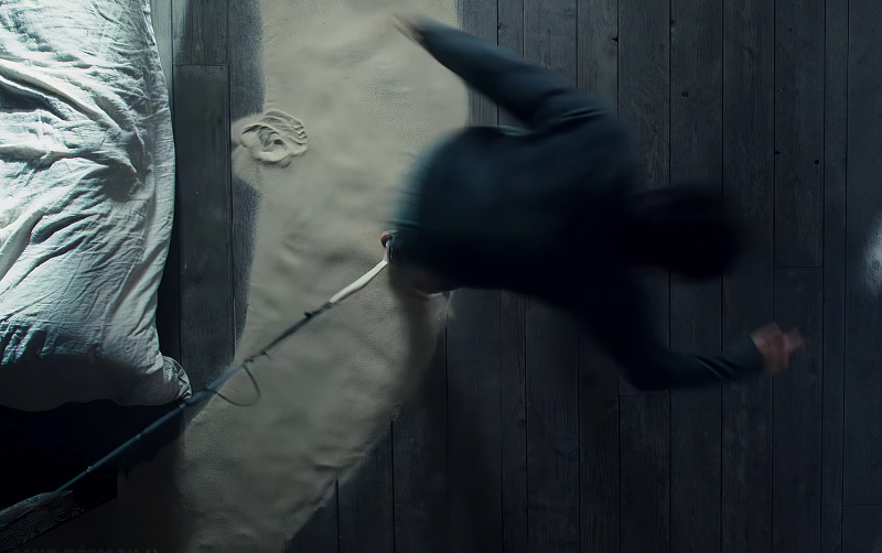 ▼ 除了重重枷鎖之外,可以留意到史蒂芬甚至在床邊灑了一圈沙子,用以檢查自己是否睡著之後是否切換其它人格離開床鋪。