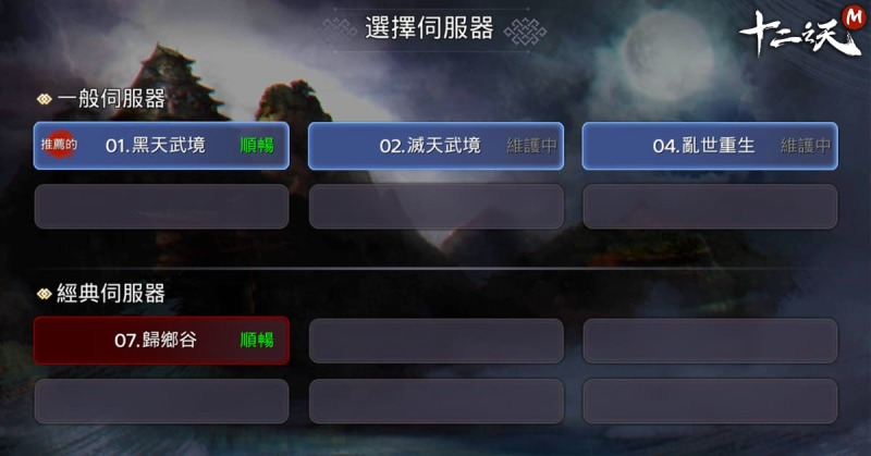 伺服器將劃分「一般」和「經典」兩種類