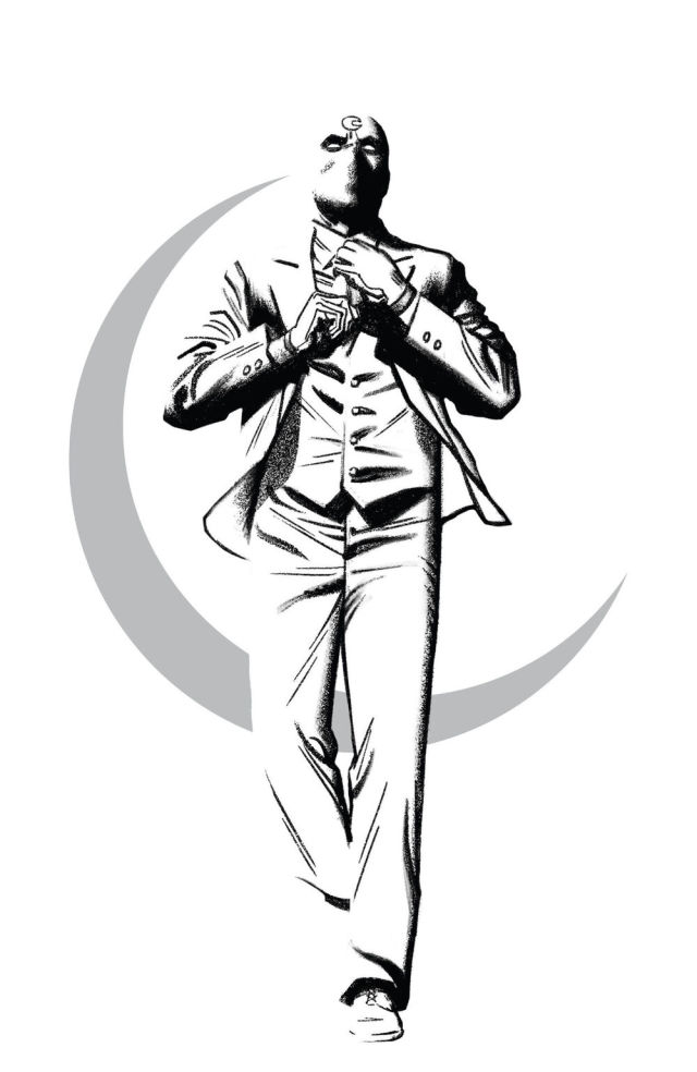 但是這才是他旅途的起點,因為馬克在沙漠中死在了埃及的月神孔蘇(Khonshu)雕像前,而孔蘇決定與他簽下契約,使他成為自己的使者,月光騎士(Moon Knight),又稱孔蘇之拳(Fist of Khonshu)。