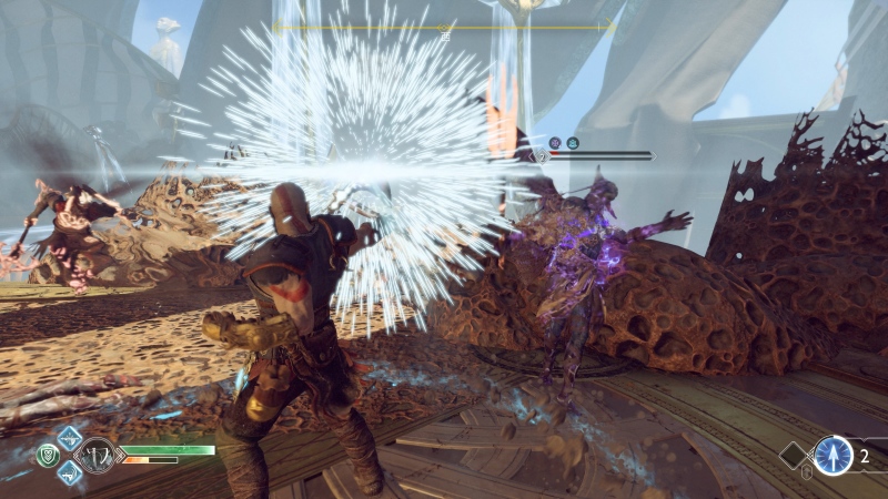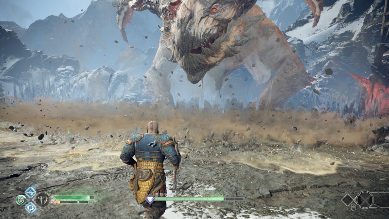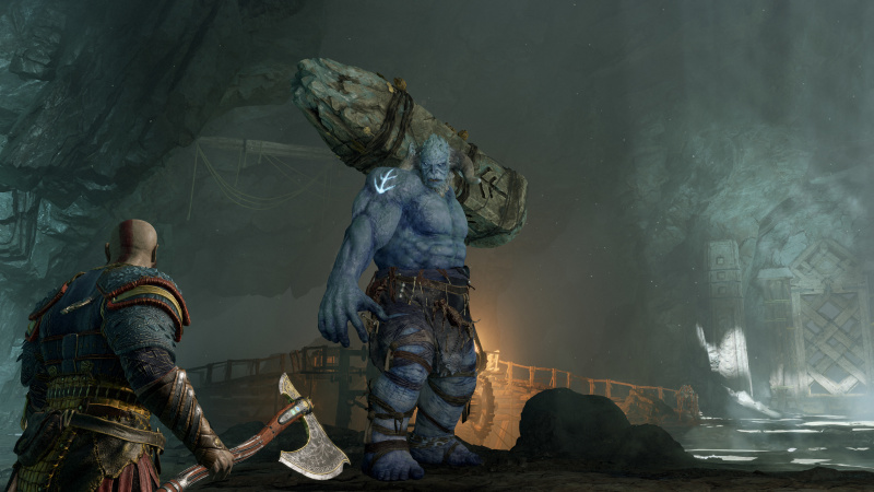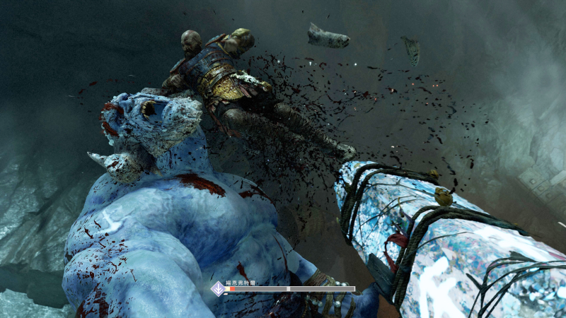 而在對上冰霜巨魔時,不只是血霧紛飛不再像是PS4那樣糊成一坨,拉起圖騰柱終結時的冰粒特效也變得相當清楚,其他材質、貼圖的強化就更不用說了。