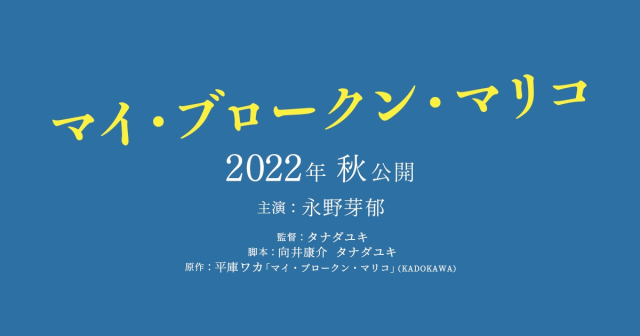 甫剛拿在去年拿下報知電影獎最佳女主角的 22 歲年輕女演員-永野芽郁,在近日確定將主演由平庫若(平庫ワカ)的漫畫作品《My Broken Mariko》(マイ・ブロークン・マリコ) 改編的真人電影,官方目前也宣布了將在 2022 年秋季上映。