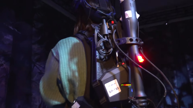 不過這種 360 度沉浸式體驗也有一點代價,那就是整套 VR 設備穿戴起來重達 8 公斤,而且一整輪遊玩下來的時間大約是 25 分鐘,對於體力不好的玩家來說或許是項另外一種挑戰。