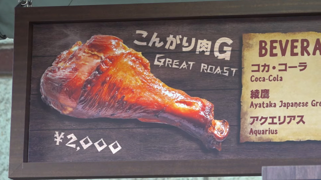 除了 VR 體驗之外,園區還有各種《魔物獵人》的各種周邊商品,像是艾路貓帽子、抱枕、回復藥飲料、超大烤雞腿、小點心等等。就算沒有買到預約票,也能在周邊商品區滿載而歸。
