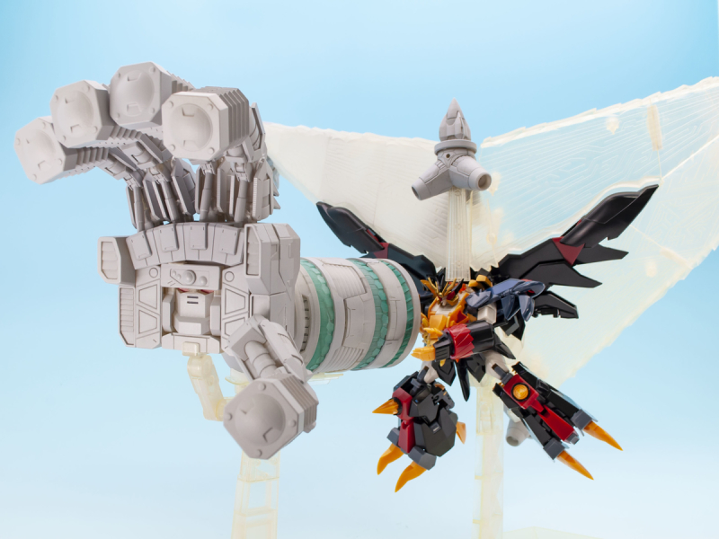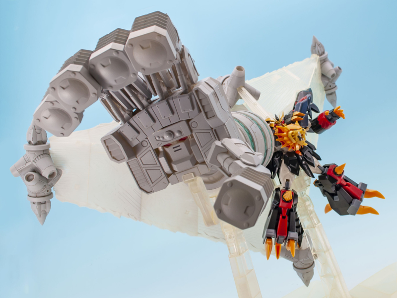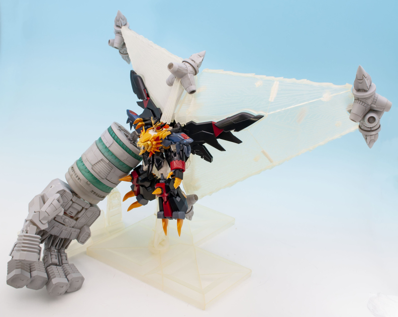 由六個 G-BLOCK 與金黃等離子翼特效組成的「高魯帝(黃金雷神)裝甲」、比本體更加巨大的「高魯帝(黃金雷神)鋼掌」則以新規零件製作,裝備完成後全高達 30 公分、寬度達 50 公分,有如成年男性手掌巨大的高魯帝(黃金雷神)鋼掌,綠色部分更重現旋轉機構。