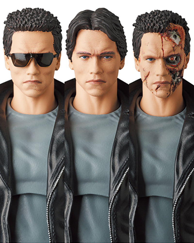 本作高約 16 公分,根據《魔鬼終結者》劇中設定再現身穿皮衣、皮靴、卡其褲的「T-800」,頭雕共有戴上墨鏡、拿掉墨鏡,以及表皮遭到毀損,露出內骨骼的戰損狀態三種,而 T-800 所使用的 5 種槍枝也都有附上,搭配多個替換手型與全身可動,就能重現終結者在電影中大肆破壞的戰鬥姿態!單單只是拿著衝鋒槍走路而已就帥到不行!除此之外,髮型的形塑、皮外套上頭的皺褶、拉鍊刻畫也都有很不錯的表現,十分期待啊!