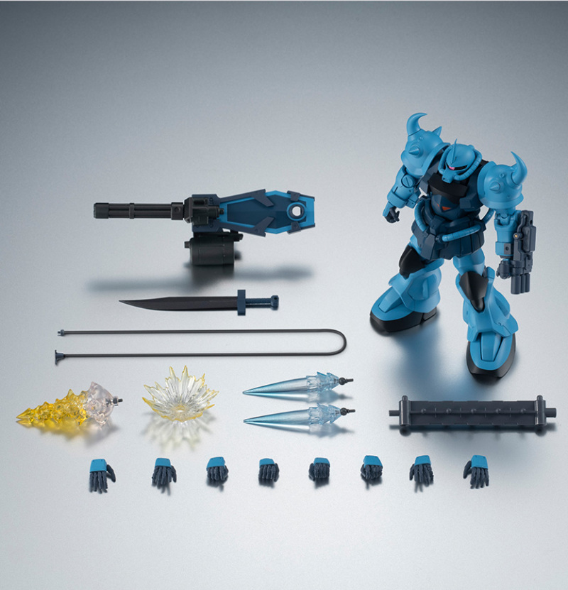 「ROBOT魂 古夫特裝型 ver. A.N.I.M.E.」忠實再現流線而洗練的帥氣造型,並具備靈活的可動關節設計,並附有多種造型手掌、3 連裝35mm格林機砲、格林機槍盾牌、熱能鞭、熱能軍刀、射擊/推進特效零件等豐富配件,格林機槍盾牌可收納軍刀也能將機槍拆卸,再現劇中帥氣戰鬥場景!