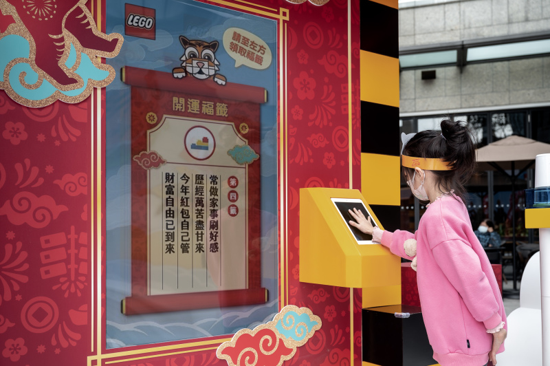 2022迎接虎年到來,台灣樂高於統一時代百貨打造神秘的「福虎雲中城」活動,以科技化互動體驗裝置,首度結合AR心願祈福的「新虎心願滿天飛」許願裝置,邀請消費者許下專屬的虎年願望。更響應每到過年都會求籤詩迎財神傳統習俗,樂高今年推出虎年限定「福虎福籤區」邀請消費者一同求取樂高虎年福籤詩測來年運勢,為新的一年求取好彩頭。除此之外,現場也特別設置4萬顆粒「樂高虎」、虎年限定盒組「80108新春百趣盒」中放大30倍的「樂高財神爺」以及放大版虎年限定人偶,邀請消費者一同踏入神秘的福虎雲中城,活動即日起正式開跑至2月6日。