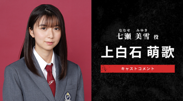 而事實上上白石萌歌先前就在 2014 年山田涼介版的《金田一少年之事件簿N》中演出過,先前僅 14 歲的她相繼 8 年後再次回到系列作。這次擔綱金田一的青梅竹馬-七瀨美雪,對於能和道枝駿佑第一次攜手主演感到十分開心,接下前四代美雪-友坂理惠、鈴木杏、上野樹里與川口春奈的女主角角色,自己也期許能不讓前輩失望詮釋好這個角色。