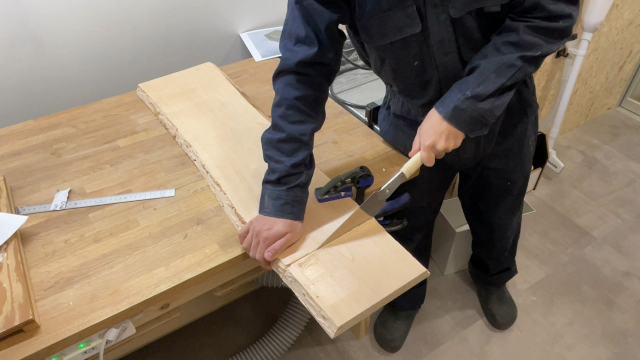 這次選擇「鯛魚燒」是因為自己在某日吃著它時,想著如果能用木工藝製作,說不定會非常具有效果,尤其是點心類的食物,讓人會不禁想咬一口也說不定,就開始了他的製作。