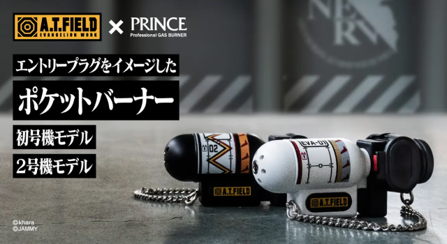 「插入栓造型打火機」推出兩款,分別以初號機與二號機的插入栓為造型打造,這次與日本成立半世紀之久的國產打火機品牌「PRINCE」合作,以自家自豪的安全&便利的操作設計配合 EVA 的風格打造,插入栓造型的瓶裝內含有打火機用的燃油,可以補充使用。