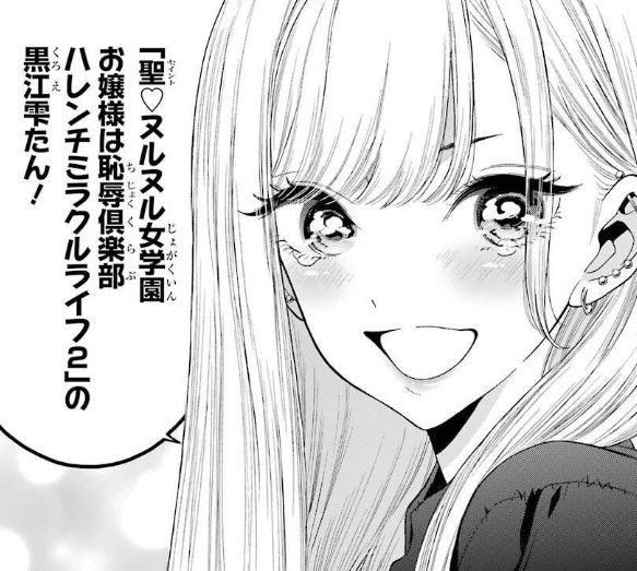 「雫たん」黒江 雫為劇中女主角喜多川海夢請男主角五条新菜製作 Cos 服裝的第一個角色,劇中設定為成人遊戲「聖♡ヌルヌル女学園 〜お嬢様は恥辱倶楽部ハレンチミラクルライフ2〜 」 的角色,帶有 SM 關係的設定,海夢說出這個角色的由來時讓新菜大吃一驚,不過仍替她將服裝製作好完成她的夢想。