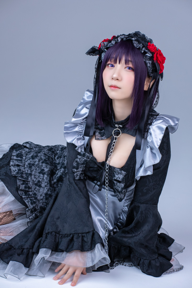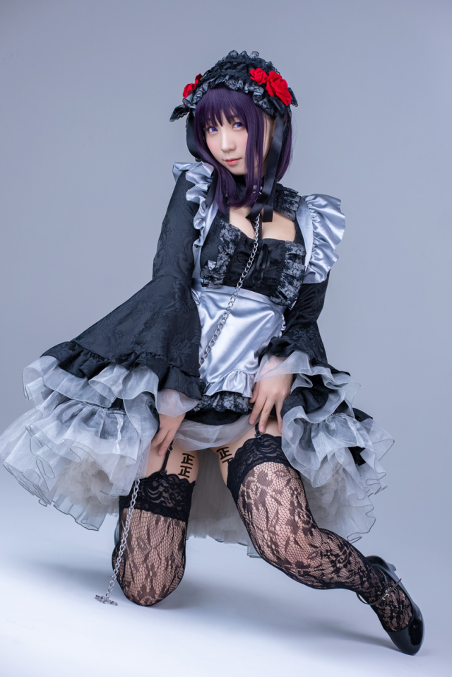 先前在動畫化宣布以及動畫開播時就拍攝過合作宣傳照的伊織萌,這次則是在Cosplay 雜誌「Cosplay Mode」拍攝內頁,穿上與黒江雫一樣的服裝,並與劇中設定「性奴隸」的一樣附上帶有鐵鍊的項圈,楚楚可憐的眼神又略帶色氣的模樣,很難不被她勾走芳心阿 XD~