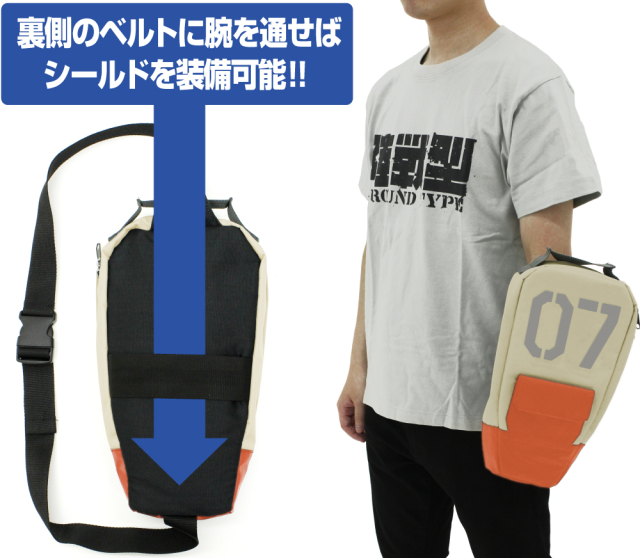 背包本體也與先前 COSPA 推出的鋼彈盾牌背包類似,以側背包為主要設計,包包本體除了背帶外另附有手提帶,盾牌外部也有個小袋子便於收納小型物品。