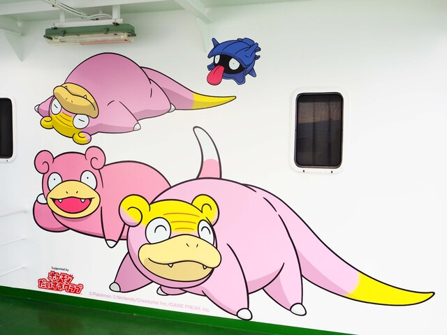 而這次地方企劃「ヤドンパラダイス in 香川」 ( 呆呆獸天堂 in 香川 ),與該地小豆島的渡船 Olive Line 合作,打造專屬的呆呆獸渡船,在船身上可以看到呆呆獸與寶貝球的圖像外,船內設施也都帶有呆呆獸的氛圍,呈現出地方合作的企圖心。