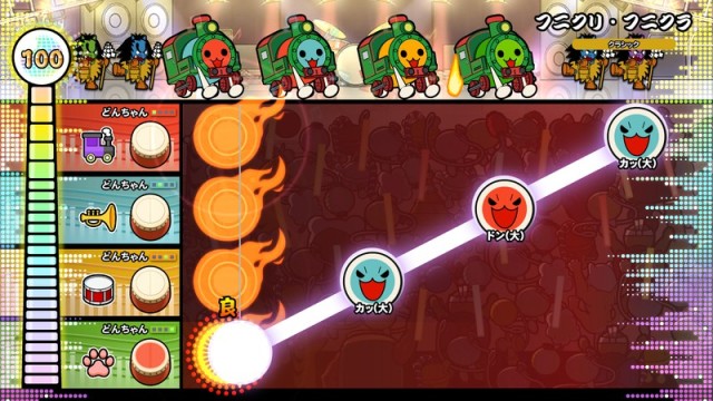 另外,對於太鼓達人不能缺少的現場同樂功能,除了新的派對模式之外,本作也新增了全新的「小咚樂團」(どんちゃんバンド)功能,可支援最多4人遊玩,大家分別擔任不同的音色,合力完成樂曲。