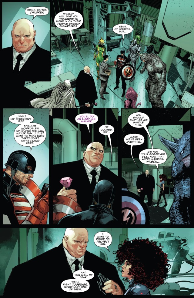 至於費斯克本人,他直接指派旗下的雷霆特攻隊去追捕紫人那些在外遊蕩的孩子們,好用來加強自己的洗腦能力。然而可以看到,一向不是壞人的美國密探對追捕孩子的任務有意見,卻被強行洗腦聽令。