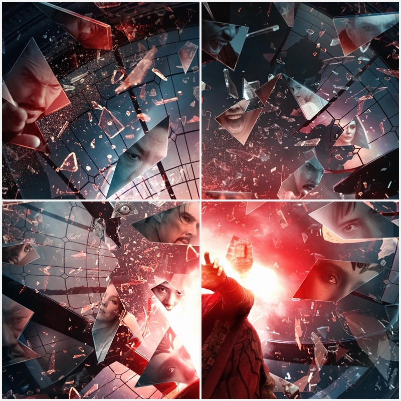 除了正式預告之外,漫威也同步公開了《奇異博士2:失控多重宇宙》宣傳海報。 海報雖然僅以奇異博士作為主角,但藉由背景飛濺四射的玻璃碎片反射,帶出了多位角色與其多元宇宙不同版本的形象,包括了奇異博士、王、克莉絲汀·帕瑪、莫度以及同樣是掌握多元宇宙關鍵的緋紅女巫與本集新登場角色「艾美莉卡·查韋斯(America Chavez)」;仔細留意還會注意到角色們的神情與造型不太相同,疑似是多重宇宙的版本。