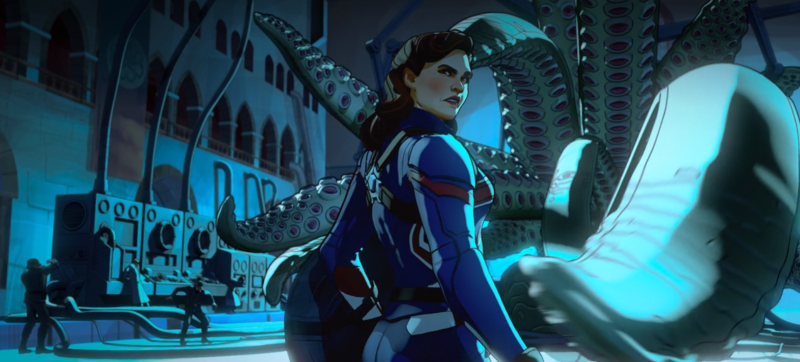 《無限可能:假如…?》的劇情講述多元宇宙中,如果漫威系列作品中的關鍵時刻,如果出現了不同的劇情走向會發生什麼? 其中第一集《假如卡特隊長成為首位復仇者》就是講述佩姬·卡特代替史蒂芬·羅傑斯注射血清,最後成為「卡特隊長」的故事。 除此之外,在本集中也出現了疑似是眼魔(Shuma-Gorath)、來自其它次元的邪神。
