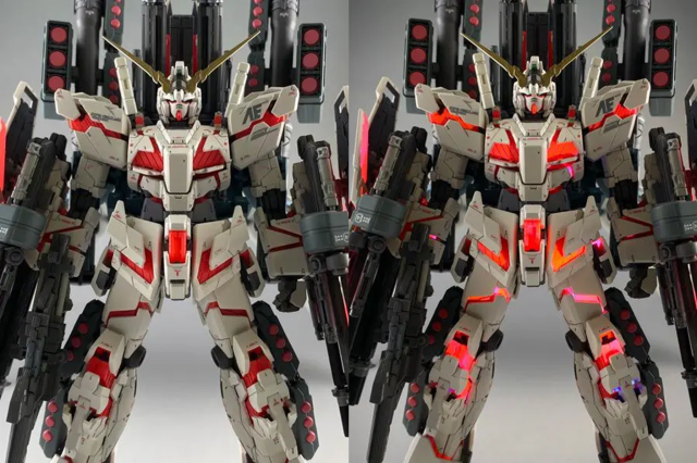 推主發布的成品影片,可以看到獨角獸鋼彈各部位的零件,都呈現出類似劇中精神感應框架(Psycho Frame)效果的樣貌。也有網友誤以為是透過 LED 燈飾裝入呈現出來的成果。