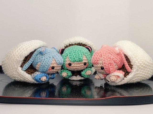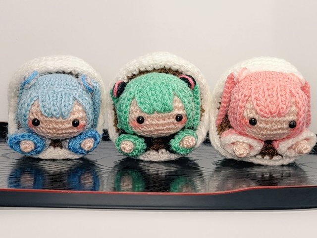 推主的針織技法是完全靠自學而來,不知不覺間,他已經做了相當多VOCALOID主題的針織娃娃,而且都有著相當獨特可愛的風格。
