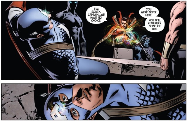但是美國隊長對此表達反對,堅決認為不需要那些手段也能夠拯救世界,揚言會阻止他們全部。於是鋼鐵人讓奇異博士洗腦他,讓他失去對這起事件的記憶;而為了拯救自己的世界,光明會則與神秘女子「黑天鵝」一起展開了毀滅其他地球的行動......