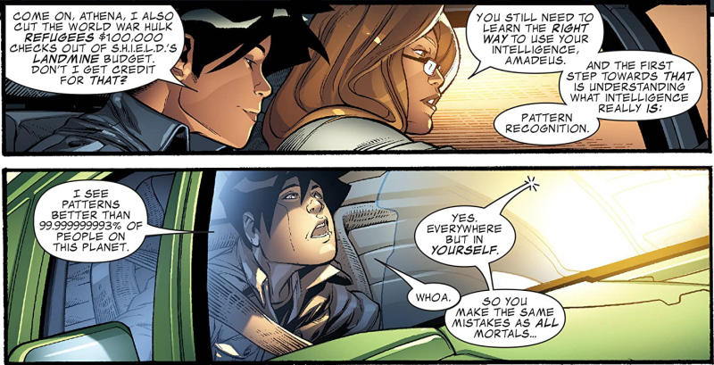 阿瑪迪斯是個韓裔的超級天才少年,經常與復仇者成員海克力斯(Hercules)一起行動。他的大腦有如一台超級電腦,能夠在不借助任何器材的幫助下進行龐大且快速的運算,即時分析並採取對當下狀況最適合的戰略,並擁有完全記憶能力,至少是全世界前十聰明的人。由於他的天賦,他被招募進光明會以協助阻止世界毀滅。