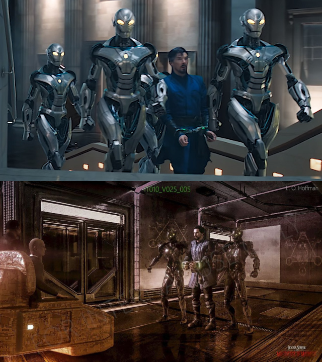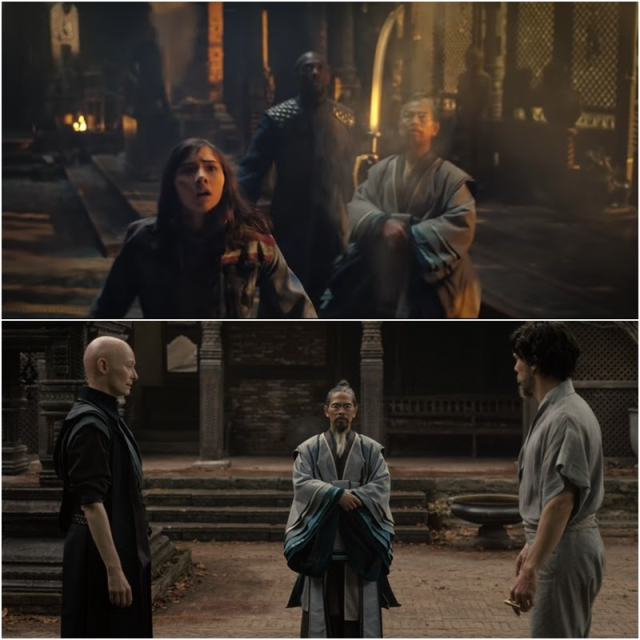 值得注意的是,一開始所在的聖所四周是有些殘破的,下一幕史傳奇將魔法收回地上的《黑暗神書》(Darkhold) 聖所周圍卻是完好的。很可能是在施用魔法時移動到了其他宇宙。