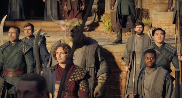 與她一起逃脫的還包括一個綁著頭髮的法師,透過服裝對比另一支超級盃電視廣告,可以確認是另一個宇宙的「捍衛者史傳奇」來解救她了。