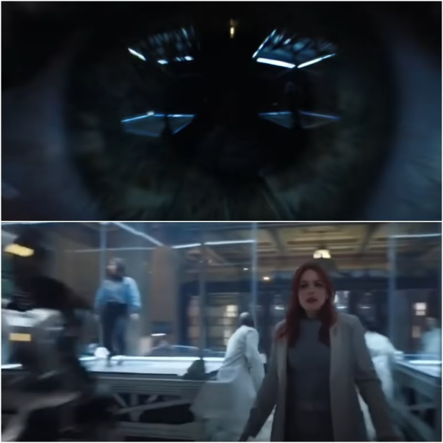 鏡頭推進後,汪達的眼中反射著兩個玻璃牢籠,對應電視廣告可以得知,就是光照會用來關押史傳奇的,而亞美莉卡顯然也被抓住了。另外,可以看到這個宇宙中的克里斯汀帕瑪似乎是這裡的成員。