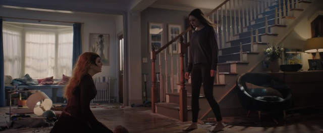 汪達似乎又回到了《汪達幻視》影集中西景鎮的家,見到另一個化身緋紅女巫的自己攤在地上潰堤。畫面中階梯左側有兩個滑板車,屬於汪達的兩個雙胞胎孩子。