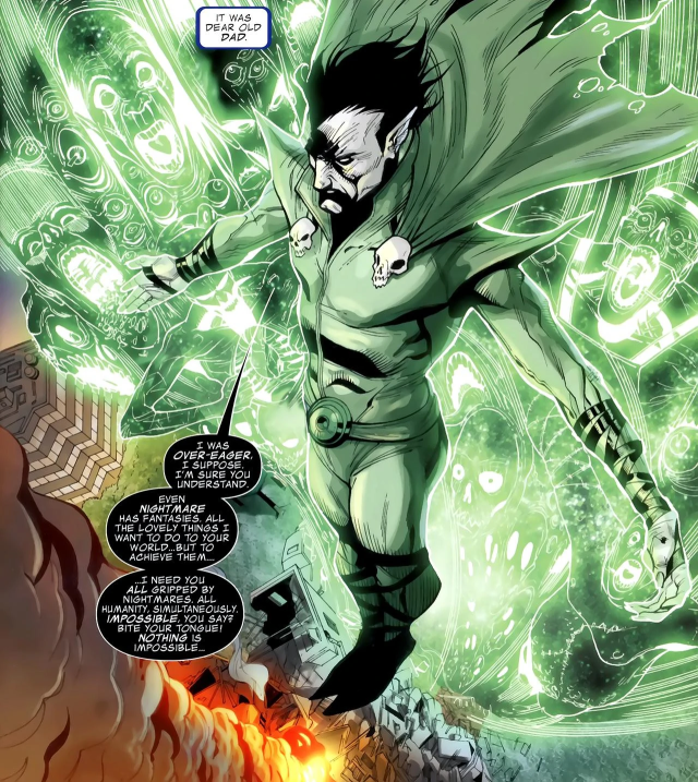 這個怪物很可能就是史傳奇口中的「夢魘」,也就是漫畫中的同名反派 (Nightmare)。漫畫中他是夢之維度的主宰,重要的是,他曾是多重宇宙怪物「Shuma-Gorath」(舒瑪哥拉斯,又譯異形眼魔) 的僕人。